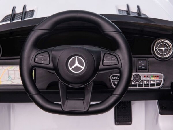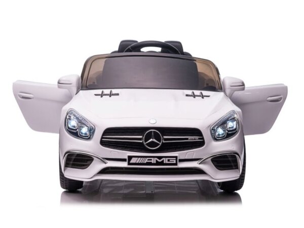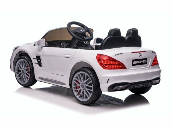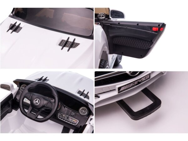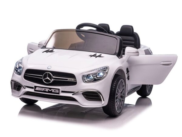 Carro elétrico infantil Mercedes-Benz SL65 AMG – S, branco, 2 lugares, adequado para crianças até 5 anos.